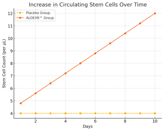 - Increase in Circulating Stem Cells Over Time: Demonstrates a steady rise in circulating stem cell count in the ALOEXR™ group over 10 days compared to no change in the placebo group.