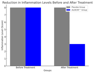 - Reduction in Inflammation Levels: Highlights a significant reduction in inflammation levels for the ALOEXR™ group post-treatment, while the placebo group shows no improvement.